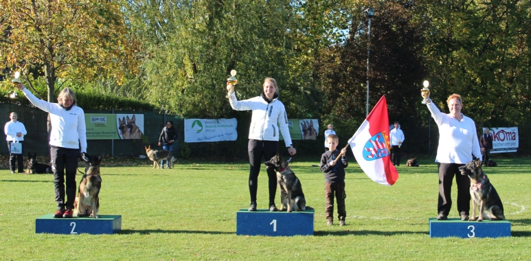 Platz 1: Angela Borkhart mit “Ypsilon Arabrab” Erwähnenswert ist, dass sowohl in der Klasse 2 wie auch in der Klasse 3 alle Podiums Platzierungen mit einem Gesamt-V erreicht wurden und das in der Klasse 3 alle Teilnehmer auch IPO bzw IGP - Prüfungen vorzuweisen haben. Die ersten vier in der Klasse 3 tragen das Ausbildungskennzeichen IPO 3, welches von einigen sogar überregional erreicht wurde. Damit ist m. E. gut demonstriert, dass sich Gebrauchshundesport und Obedience nicht im Weg stehen müssen.