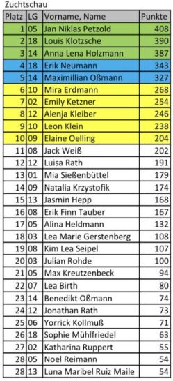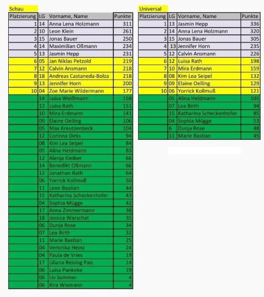Folgende Ergebnisse wurden von unseren Starterinnen erreicht: