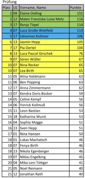 freue mich sehr, dass alle Teilnehmer ihr Prüfungsziel mit sehr guten